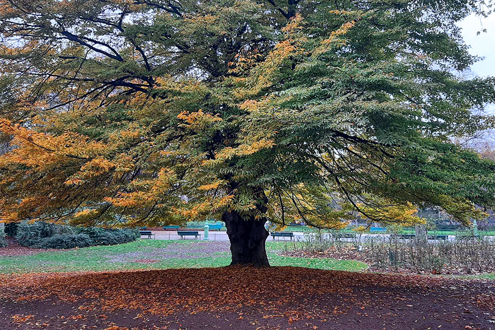 À quoi se raccrocher quand tout se transforme et meurt à nouveau ? À qui attribuer les merveilles colorées transfigurant de rouge, grenat et orangé les feuilles vieillissantes ? Tant de questions nous viennent lorsque nous marchons sous les érables, caryers et marronniers qui rayonnent encore un peu avant de se retrouver glabres. Au Japon, on vénère le komorebi, contemplation de la lumière à travers les feuilles des arbres… Mais quels messages lire aussi dans la calligraphie mystérieuse des branches nues ? Au milieu d’un ciel vide, les ramées tiennent lieu de langage. Elles nous racontent des histoires de vie, d’espoir et de pertes. Étrangement stables dans leurs ramifications mêmes, et malgré les montées ou pertes de sèves qui les tordent, les branches de toutes sortes nous rassurent : même mortes, elles pourront encore allumer le feu.