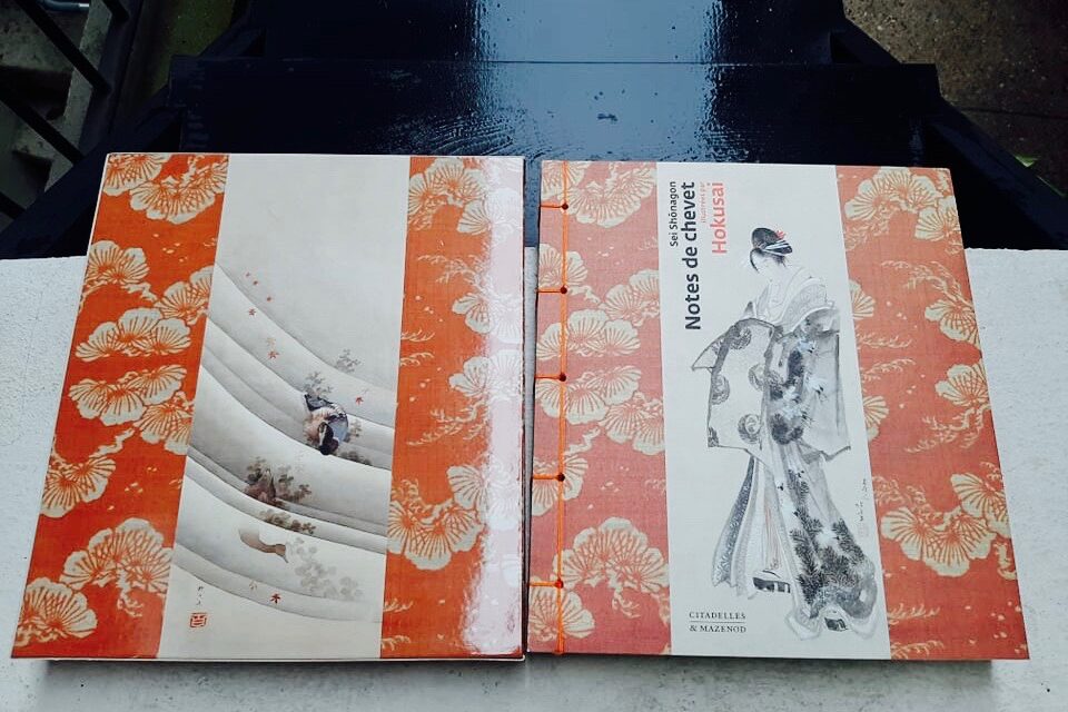 Sei Shônagon, Notes de Chevet, traduction et commentaires d’André Beaujard, Gallimard/Unesco. Ainsi que la superbe édition, en beau-Livre illustré par Hokusai, chez Citadelles et Mazenod.